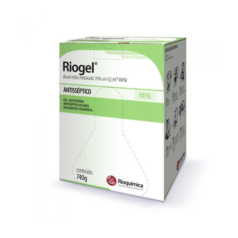 O Antisséptico RioGel é um álcool etílico hidratado em gel 70% v/v (em volume), correspondente a 62,44º INPM (em peso), indicado como antisséptico de mãos.